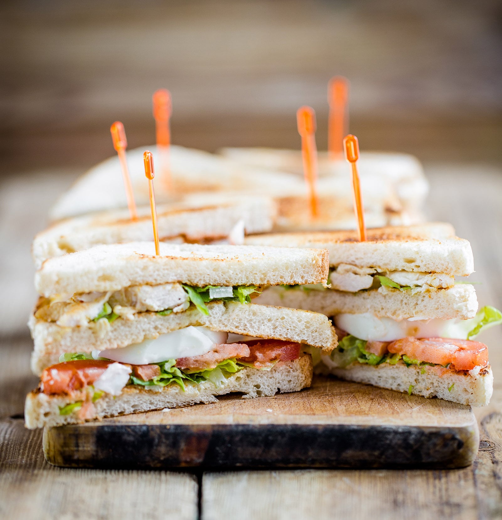 Kanapki Sandwich podane na bagietce, bułce katalońskiej z ziarnami lub ciabatej